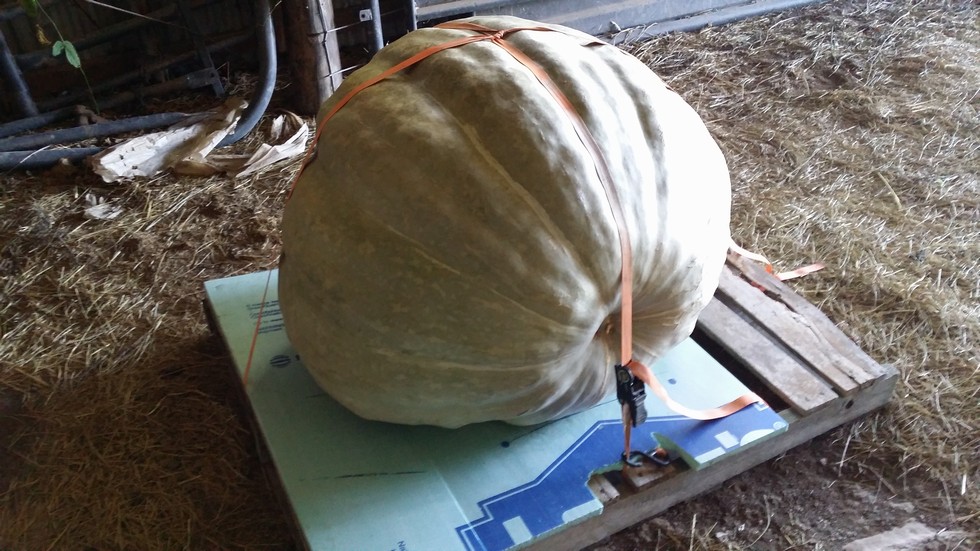 This is the 516 Cantrell 15 weighed in at Cullman. 784 Cantrell 14 x self. 12 % heavy and symmetrical. No seeds harvested yet. Plans to put it on display at our local fair if it will hold together a couple more weeks. I expect this one to produce some very special squash in the future. I'm hoping for a much better seed count than her sib had.