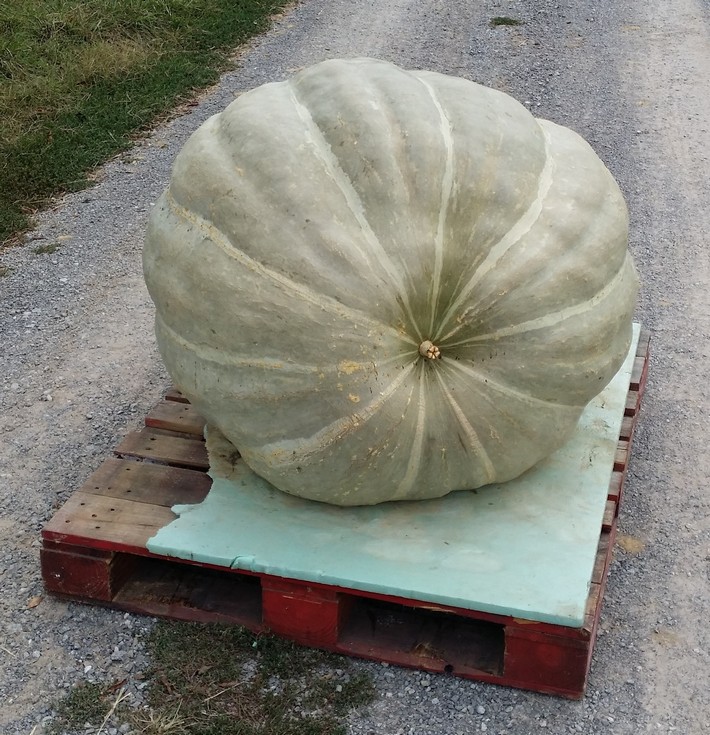 Had the largest squash at Bear Wallow and 25% heavy to boot. 694 Cantrell 15 The cross is 752.6 Cantrell 14 x self. I don't think I have posted anywhere the genetics behind the 752.6 since it was weigh at a local fair and originally was not going to plant it. Plans change. She was 743 Cantrell 11 x 1531.6 Haist 10.
