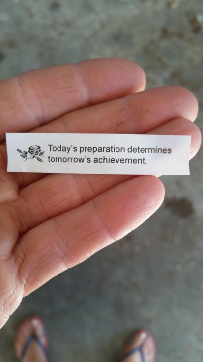 I went out to get some Chinese food for lunch and this was my fortune. A good mantra for when I'm exhausted from burying vines and the other seemingly endless chores associated with caring for 6 pumpkin plants!