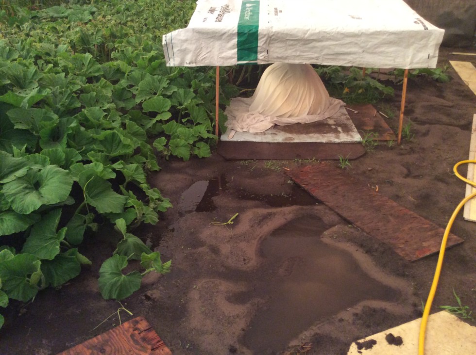 Survived the storm well, thankfully no hail. 1 4/10 in in less than an hour though. Wind gusts to 60 mph, whew!!! Pumpkins are doing great. Gimmlet will go over 700 lbs tomorrow. Gimmlets little brother Datout (1227B Fleser) is showing great progress, he's running mid 30s the last three days. 319 lbs.