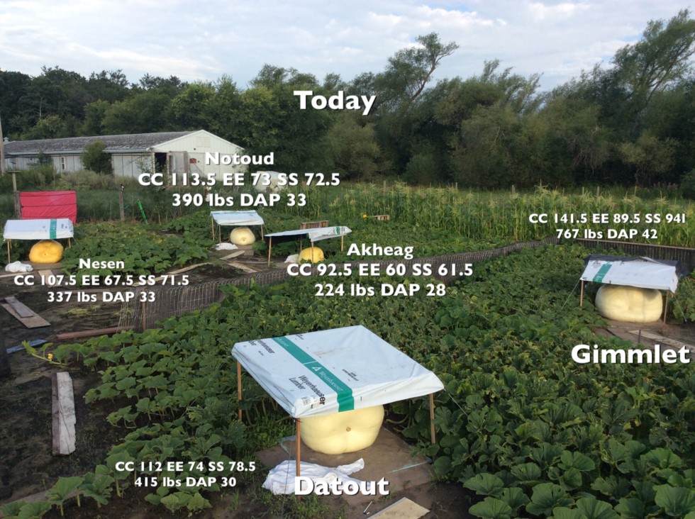Gimmlet slowed down a little, only a 24 lb gain since yesterday, normally he's been in the mid 30s. Could be where I placed my tape. So I marked all kin where my tape line is so there exact every time. I also moved Gimmlet forward 2 in, what a fiasco that is. And scary as all heck. But I had to release the pressure off his stem, it's bending downward due to rear growth. His little brother Datout is humming along 33 lbs a day last 6 days. The rest are idling along mid to upper 20s a day. Life is good.