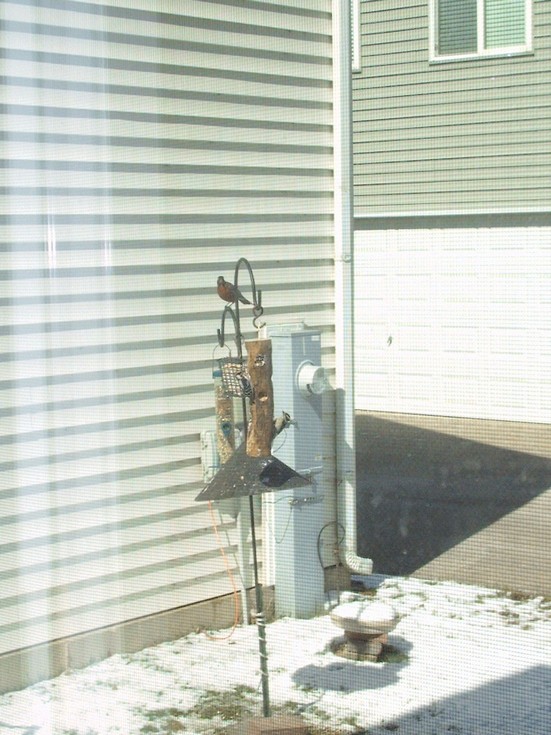 Someone gave the robin the wrong information on the start of spring!! She loves to eat the homemade suet with the downy woodpeckers at my feeders. One day, I am hoping to capture a photo of the red belly woodpecker!