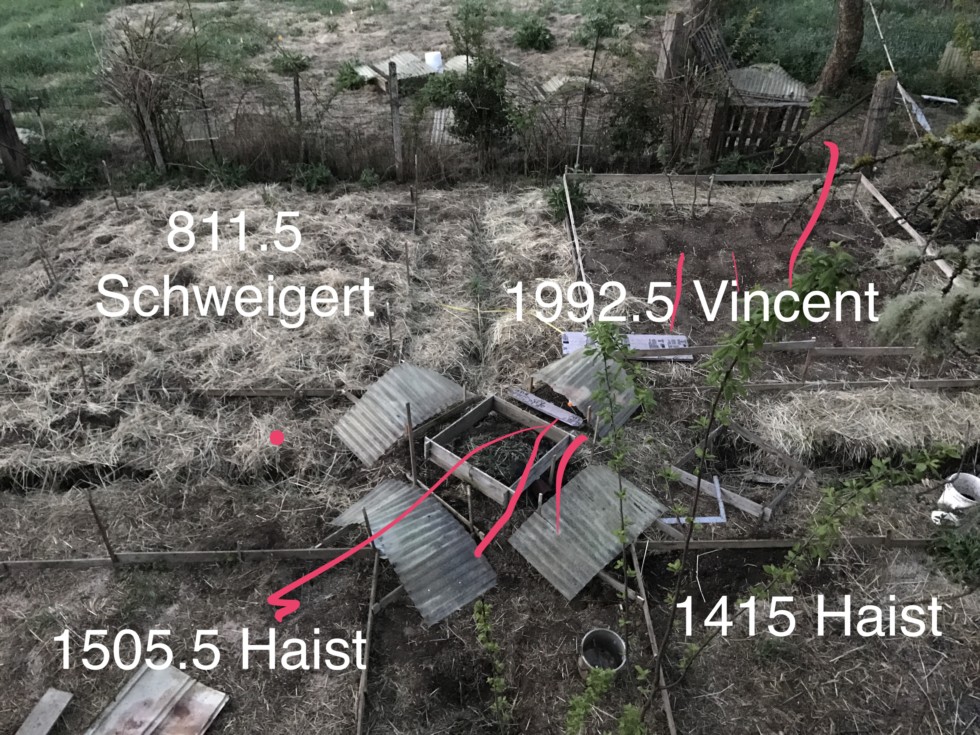 Four identical patches. I might do eight 150 sq ft patches but right now I'm at four. Competition patch is upper right...1992.5 Vincent. 1514 White backup. A 1245.5 Werner backup backup.