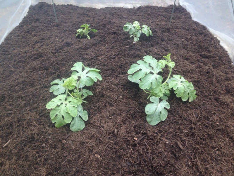 Barber melons up front, Terry melons in back. Back two were pouty until about a week ago, but starting to at least show some movement now. Front two starting to head in opposite directions.