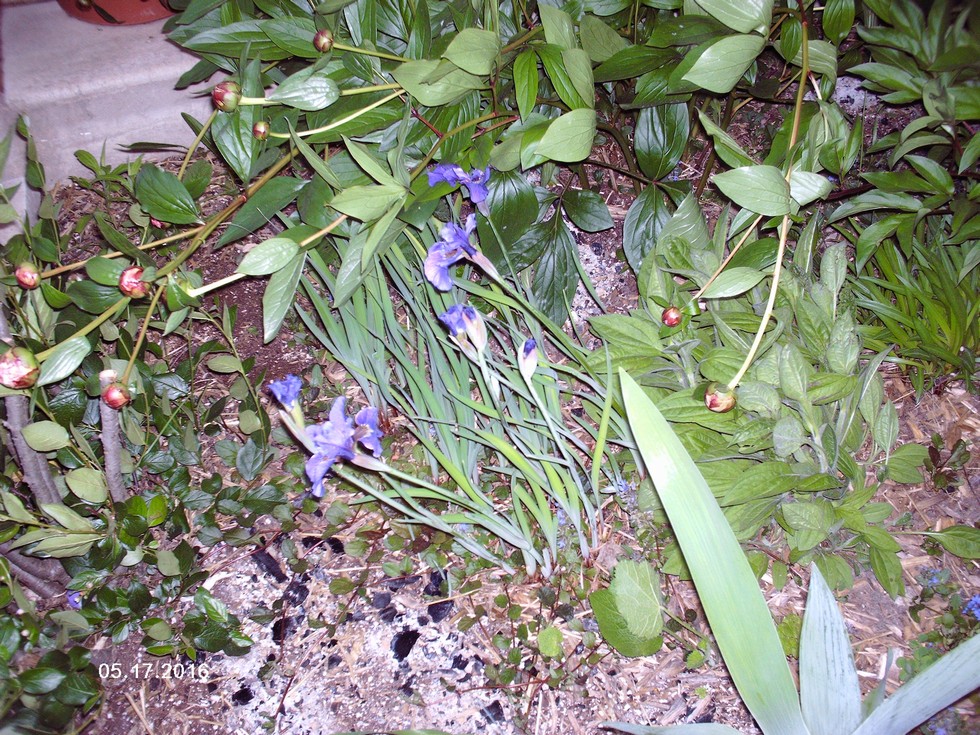 My dwarf irises opened today. Unfortunately, the weather is a bit crazy! The wind is driving from the south at 30+ mph!! Temps are still holding in the 80's. I think the storms are coming!!