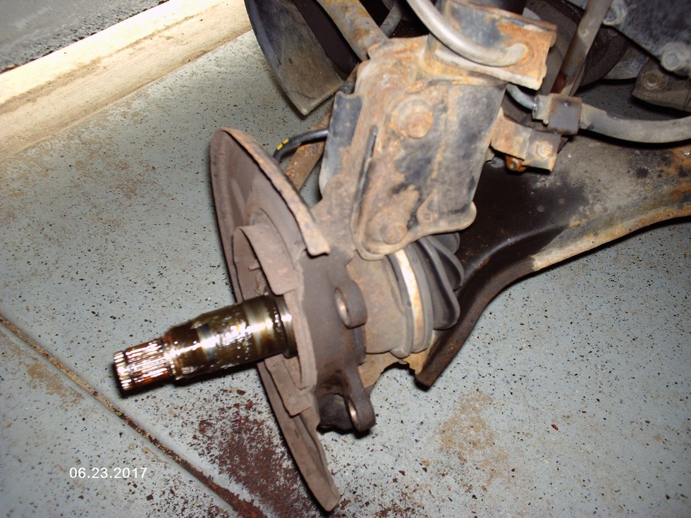 I am learning a great deal about owning an older car. My 1998 Nissan Pathfinder needed brake pads, but a closer look at all the wear opened a bigger "can of worms". Living in the midwest and packing on over 100,000 miles since I bought this car has tested my patience! This is the bare bones shot once my son, Christopher, was finally able to remove the caliper assembly, pads and rotors. No small task and definitely looks cleaner than an hour earlier. I am sure I did not score positive points with neighbors with all the banging to free up rust welded parts.