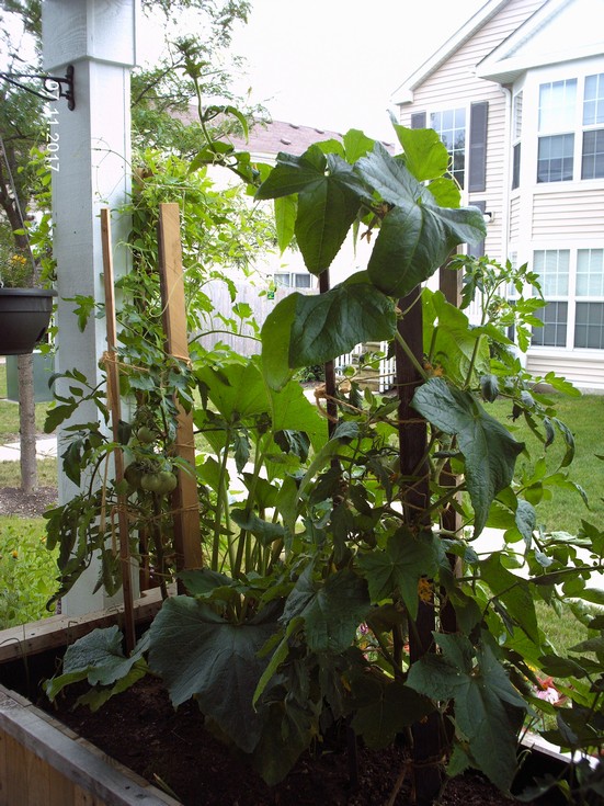Lemon Boy just behind the Space Saver cuke and to the left, the Purple Cherokee tomato!!