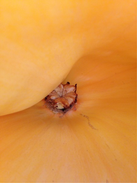 You can see here that as she went perpendicular to the vine, I was able to keep the center lobe on the bottom directly in the middle. This caused two wide lobes to sit either side and two stacked tight on top. I started to think about this as my pumpkin was getting the same blocky shape on the same seed that Shannon had last year. Sure enough, same thing on his.