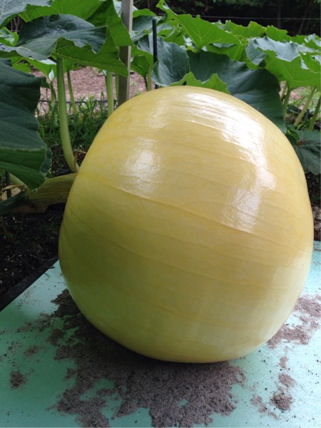 I should have taken better care of her at the beginning of the season but got behind. When my wife propped her pumpkin, I only had small scraps of foam to support it to the stem/blossom level line. Her pumpkin grew to the edges too fast and we had to get it on the board before it sagged around the foam, so it ended up out of level as you can see by the veins running along the side. This was a big lesson in early shaping of pumpkins, make your leveling supports bigger than you'd expect to need, or you may end up with a nose dive over the blossom end, again gravity affecting the shape of the top mostly. Hopefully my wife forgives me for not getting a nice big new piece of foam in the first place for her.