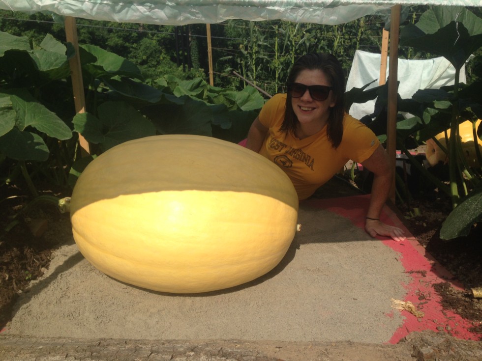 An early picture from my 631 from last year with the Vine Line just starting to get out of whack. This is when I started to learn about sliding the pumpkin forward as it grows. It'll go on it's own for a bit, but then gets too heavy and friction takes over. If this is not adjusted periodically, you will more often than not get a forward lean to your pumpkin.