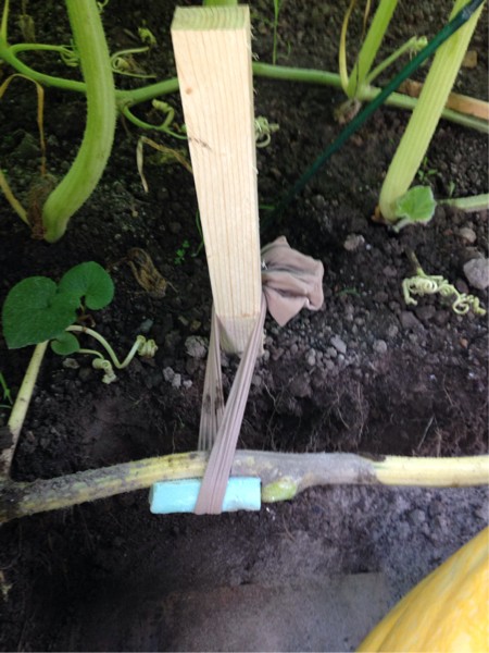 Also started pulling the far side of the vine. Didn't think it through all that well on the 150 patch, and ended up with a tight vine to keep the pumpkin I wanted, so using the trick Larry Checkon taught me last year for this issue.