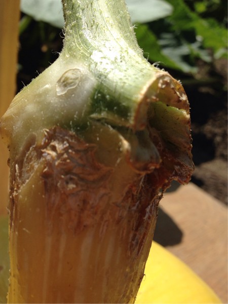 Those of you who plant bulbs in the garden (tulips, daffodils, alliums) will know why I regretted picking her up. It was the same as when you put a shovel into your soil and it sounds like you chopped through an apple, only realizing you forgot about one of your favorite bulbs after the foliage has died back. SNAP! Luckily, it seems to have only been the basal stalk tissue left from the leaf at the pumpkin, the solid vine part of the tissue is ok. This is on the far side of the bend from the stump, and is what signaled I needed to raise the incline of the vine to keep the vertical stem from stressing. Perhaps a slight backward bend would have been beneficial, but would be hard to keep while maintaining level... maybe more of the day without supports as long as it's not windy to let the weight of the vine slowly bend without being too heavy to pull the pumpkin?