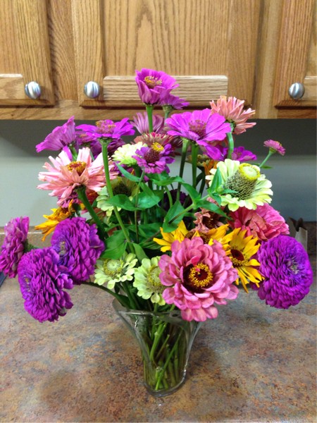 Bunch of zinnias went down with the corn, so I brought a few in for the wife to lighten the load a bit.