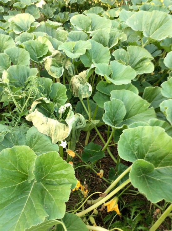 ...Which is what I'm doing. 1103 Zaychowsky x 811.5 Schweigert on one half and 1103 x 1462 Gibson on the other. Only lost half a dozen leaves so far I guess the plumbing wasn't right to get water to these leaves anymore but most leaves survived a hot sunny day today so it seems to be working pretty well so far. It's so late in the year and the plant is cramped for space, it's one of my best plants though so I want the crosses off it even though the pumpkins will only be in the two hundred pound range I love the colors and genetics and I am interested in growing my best plants again!