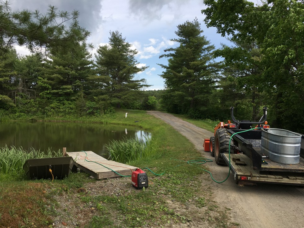 My fancy watering system. I draw water from my pond into 100 gallon cattle tanks and currently hand water. I will lay down drip tape soon and do both drip and hand watering.