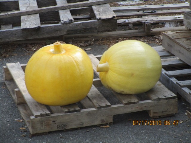 Yesterday was decision day on 7 plants, these were the biggest pumpkins I cut of to save smaller ones in better locations,, Left is the 1275 Rea and on the right is the 1297 Young.