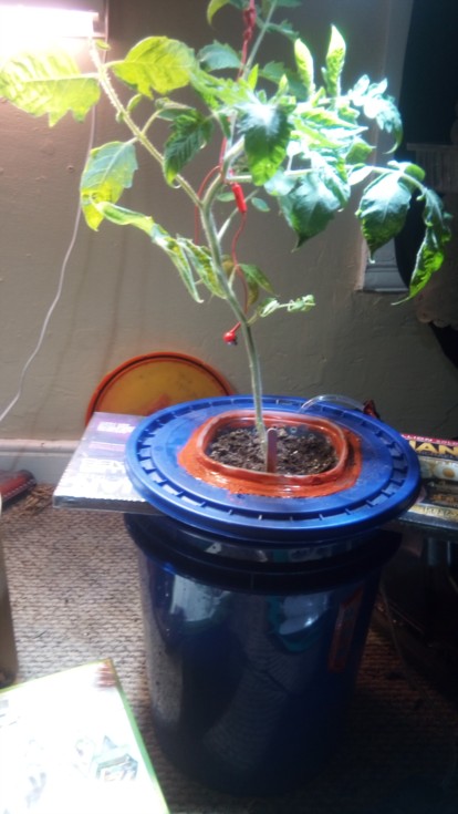 First DWC Grow-Domingo Tomato, Growing Quicker and better than all other plants...used Soil as my medium so I can direct Sow. Only changing the water once a month and using half strength miracle grow(tomato version) as the fertilizer.