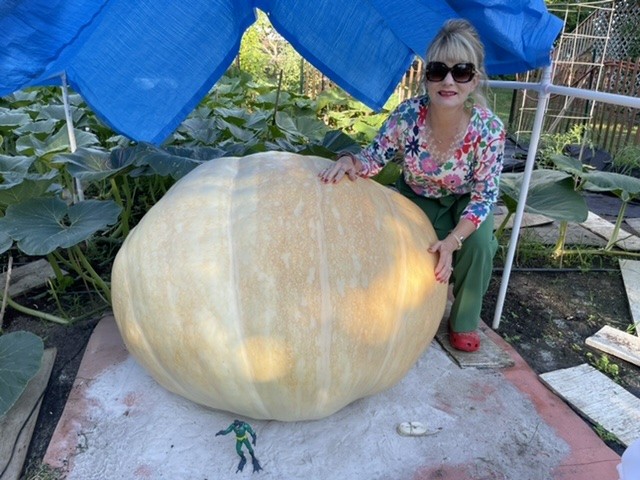 Here is Sparky, my 1979.5 fruit at 43 DAP, taping around 785#, averaging about 25#/day. Not satisfied with that at all. The main vine & all secondaries are terminated. There are 7 tertiary vines on the right & 4 on the left. Tomorrow those get terminated.