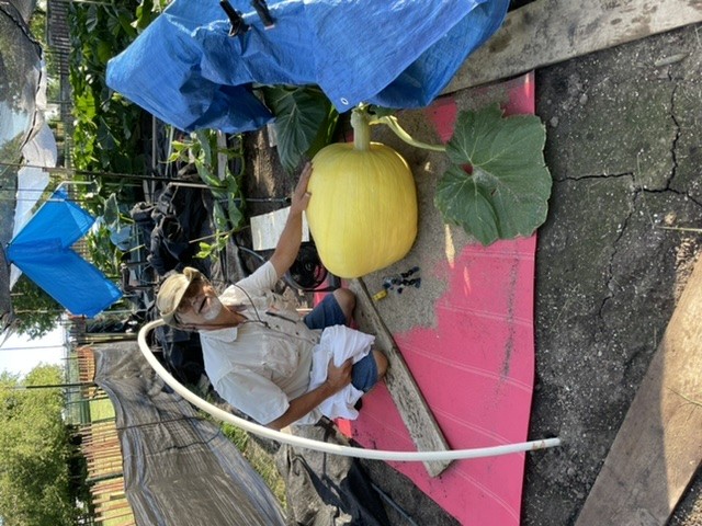 This is Heisenberg, my 2226.7 BoonenHerman fruit at 21 DAP. He should be over 160� tomorrow & on the OTT chart. He has some secondary vines that will be terminated tomorrow but 2 of them are quite vigorous & will be spared the blade temporarily.