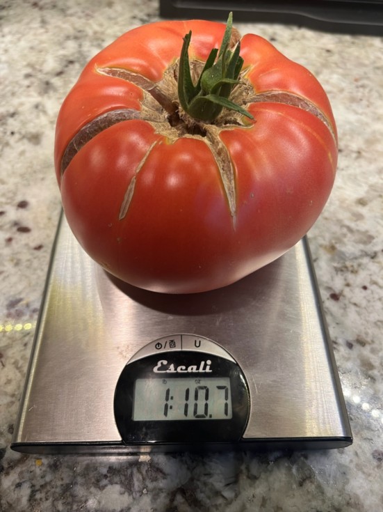 For the weight and heft of this tomato i was impressed by the roundness and overall shape (besides the cracking). It was tasty!