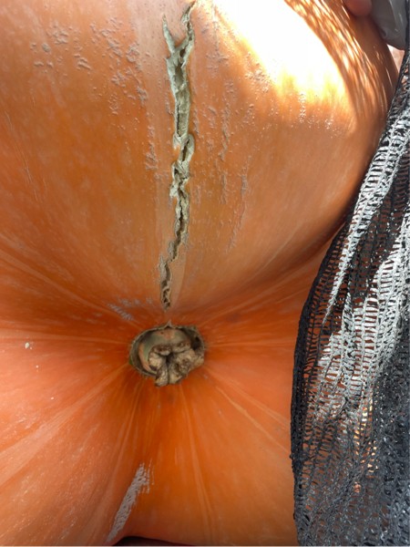 This crack has now moved south and is very close to the blossom. Wondering if I should cut this fruit to avoid any further cracking. Harvest day is still 20 days away and the Weigh Off three weeks from today.