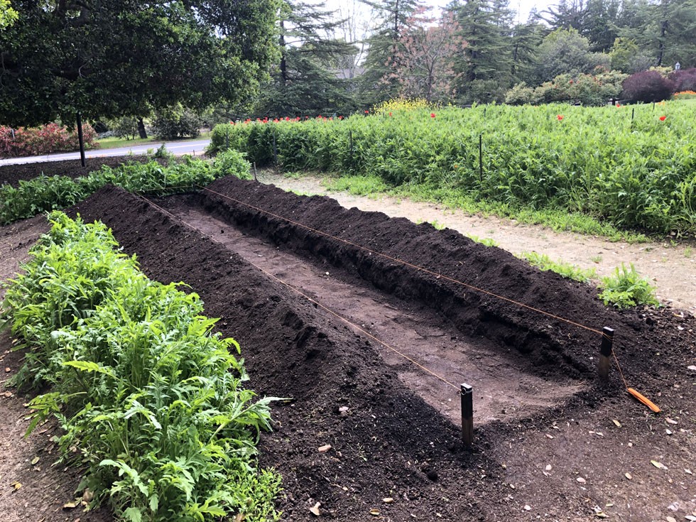 Gold Digger � Starting a double dig in the root zone for my tomatoes. After amending and tilling the topsoil, I move the top layer aside and amend and till the subsoil to give the roots a little room to spread their wings. The topsoil is then pushed back � leaving a fluffy planting mound...