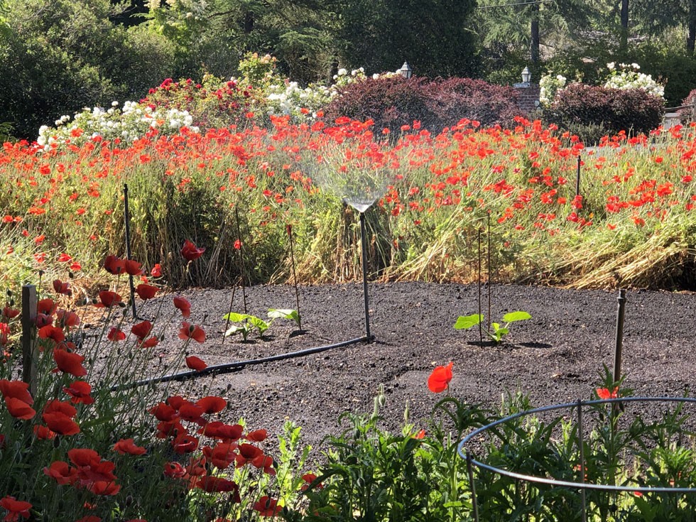 New Kids on the Block � I cleared and tilled a little island in the red sea of poppies to give the kids some room to run. That�s the 1634 Rea on the right and 1552 Young on the left...