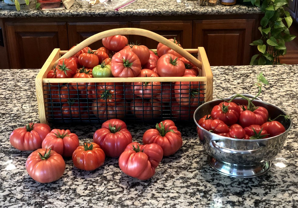 You say Tomatoe � I harvested 35 pounds of tomatoes yesterday. Mom�s tomato soup and salsa is on the menu...