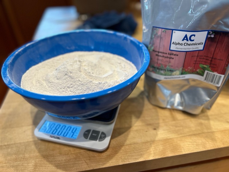 I always like to sneak into the kitchen and use my wife's cooking gadgets to mix up my micro nutrients. Of course she came home when I was right in the middle of whisking together borax and manganese sulfate. She harassed me about the mess I was making in "her kitchen." I was glad to hear that she still considers it "her kitchen" which to me means I don't have to cook!