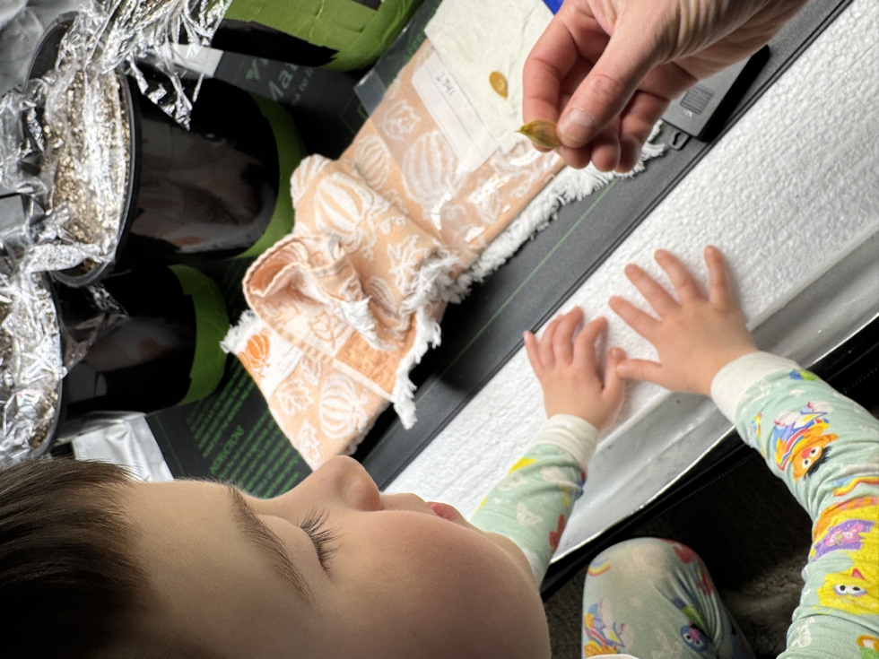 Carson was pretty excited to see the little white roots poking out of the seeds. Honestly, so was I. It always amazes me to watch a seed wake up from dormancy.