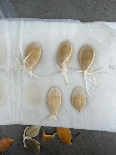 As soon as the roots emerge we plant the seeds into a pot.